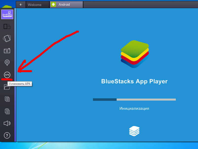 3 Запуск программы имо через bluestack Теперь вам необходимо запустить эмулятор bluestack и нажать кнопку «установить APK».