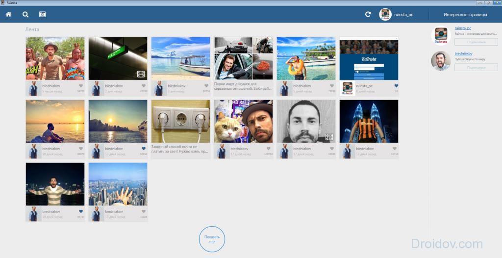 Программа — инстаграм компьютерная версия для всех версий Винды – Руинста. Простота, удобство и безопасность этого клиента подтверждены временем и сотнями тысяч скачиваний. Возможности, которые предоставляет программное обеспечение просты и понятны. Так что не потребуется много времени на разбор самого приложения. За счет большой площади монитора использование социальной сети становиться даже более удобным.