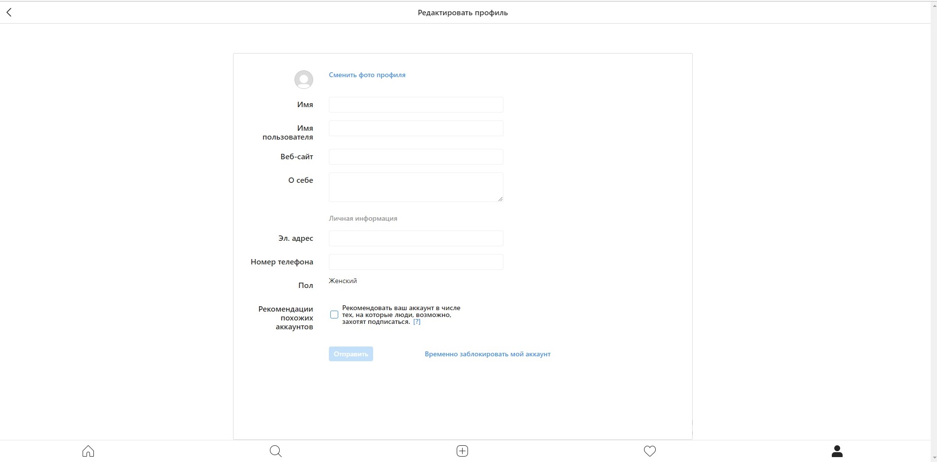 После успешной регистрации в «Инстаграм» необходимо заполнить и оформить свой профиль.