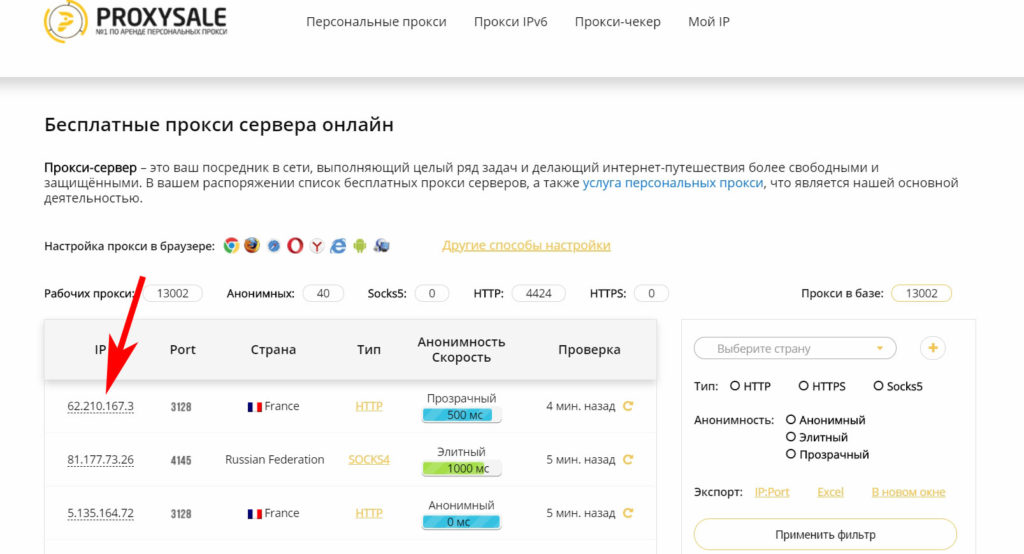 Плюсы: Возможность выбрать IP определенной страны. Большое количество бесплатных прокси-серверов.