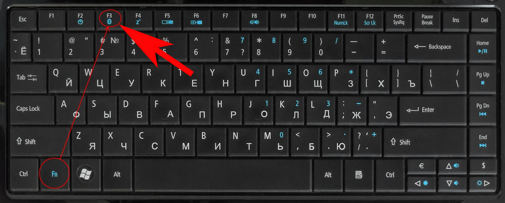 У вас нет значка Bluetooth (синий зуб) на клавиатуре? Значит, аппаратный способ вам не подходит, переходим к программному.