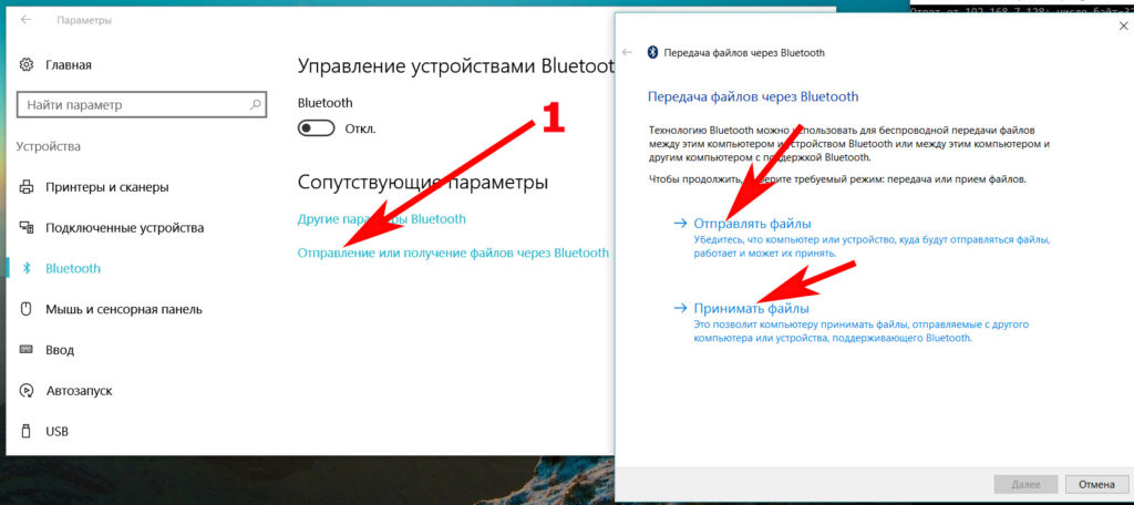 Пункт «Отправление или получение файлов через Bluetooth» может быть использован для облегчения отправки и получения файлов.