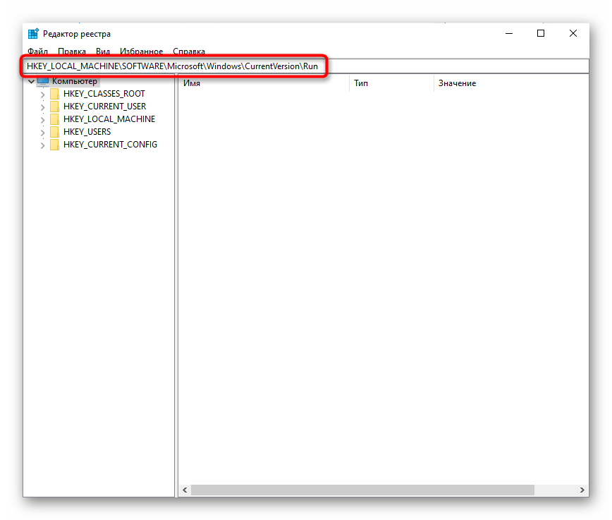 Перейдите по пути HKEY_LOCAL_MACHINE\SOFTWARE\Microsoft\Windows\CurrentVersion\Run. Обладатели Windows 10 могут скопировать и вставить этот путь в адресную строку, нажав Enter для перехода.