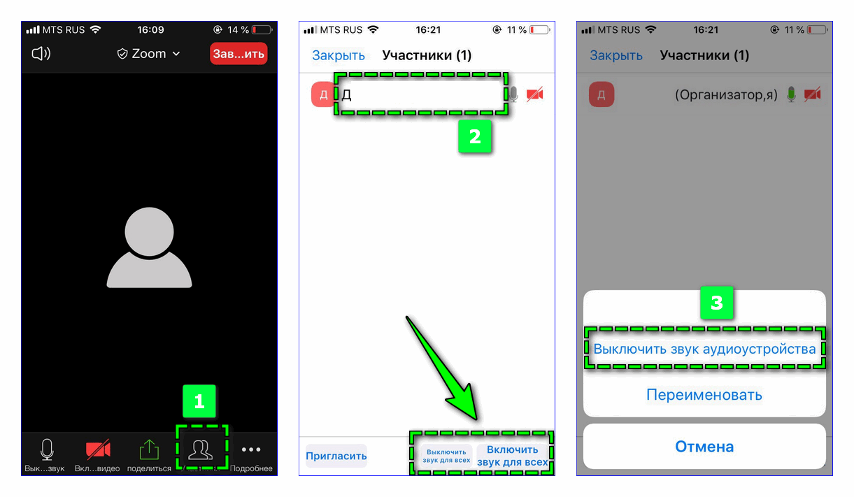 Организатору видеозвонка в Zoom доступно также выключать и включать звук других участников. Для этого необходимо: