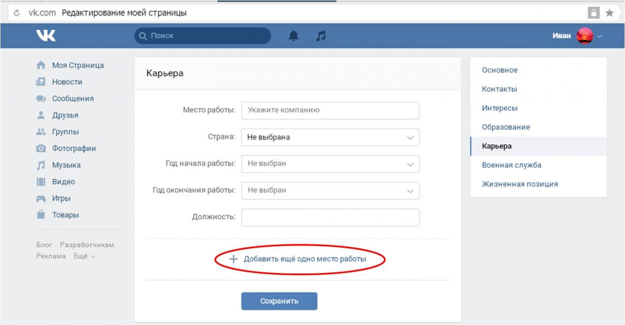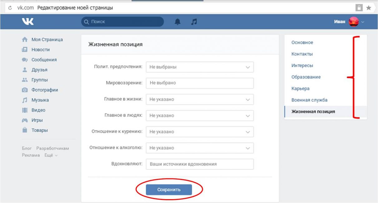 по окончанию нажать на «Сохранить», и перейти к следующему пункту заполнения информации.