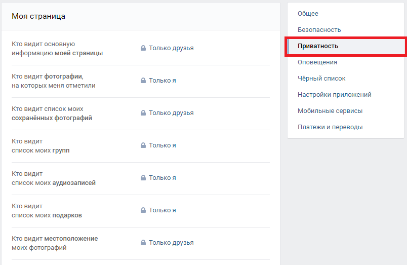 Вполне понятное желание — закрыть свою страницу ВКонтакте от других людей, например, от всех, кроме друзей. Или разрешить просматривать на ней только некоторую информацию. Все это можно сделать. Зайди в меню «Мои Настройки», а затем вверху выбери закладку «Приватность». Ты увидишь много настроек, можете менять то, что Вам нужно; например, напротив «Кто видит основную информацию моей страницы» выбери «Только друзья» — тогда никто, кроме тех, кого Вы добавили в друзья, не увидит информацию, которую указали на своей странице. Главное сохранить все настройки которые были изменены.