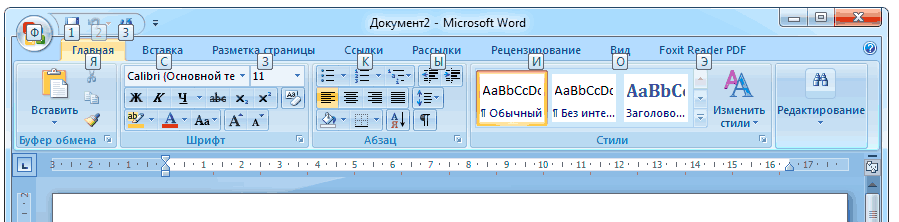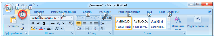 Например, нужно поменять размер букв. Значит, сначала нажимаем Alt, чтобы активировать режим выбора с клавиатуры. Затем, клавишу с буквой Я, чтобы работать с вкладкой «Главная».