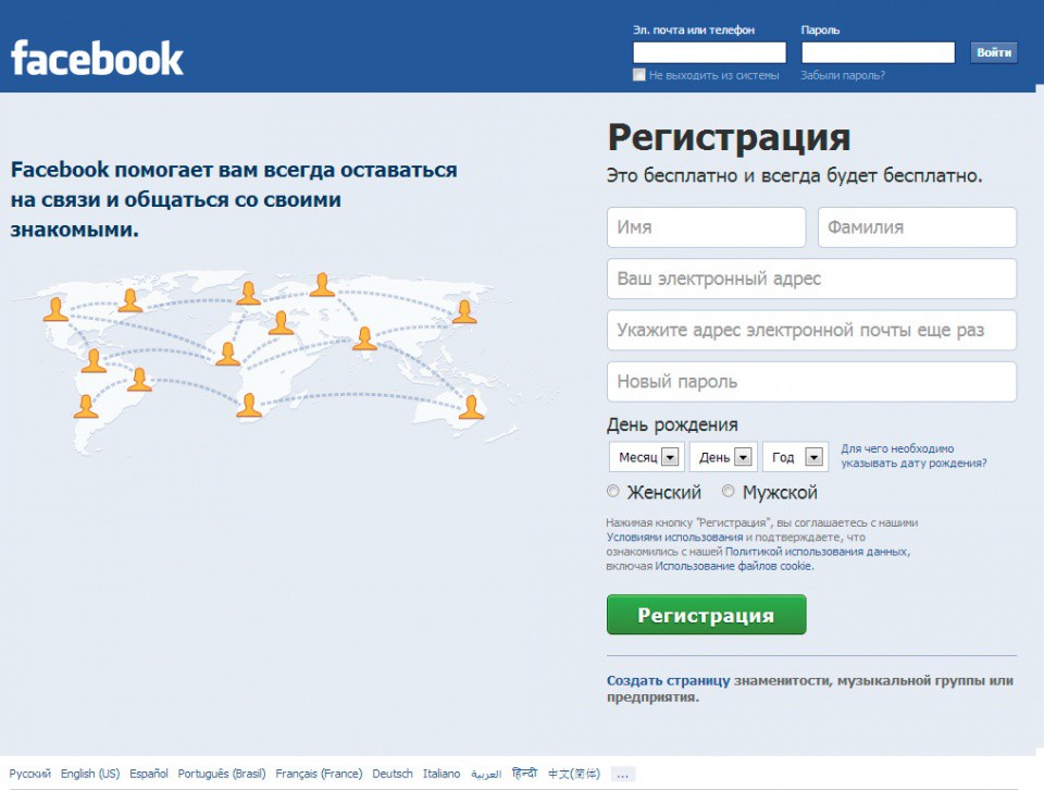 Чтобы выполнить регистрацию аккаунта в одной из наиболее посещаемых социальных сетей, следуйте следующему алгоритму:
