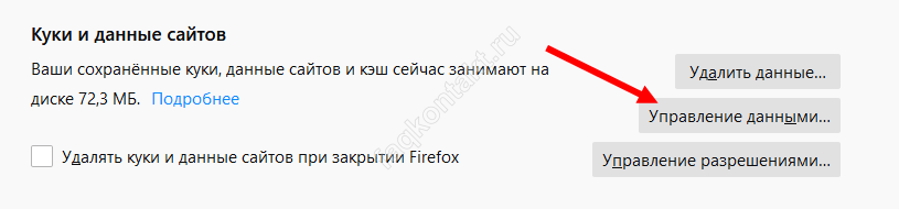 - Прокрутите до раздела «Куки и данные сайтов»;