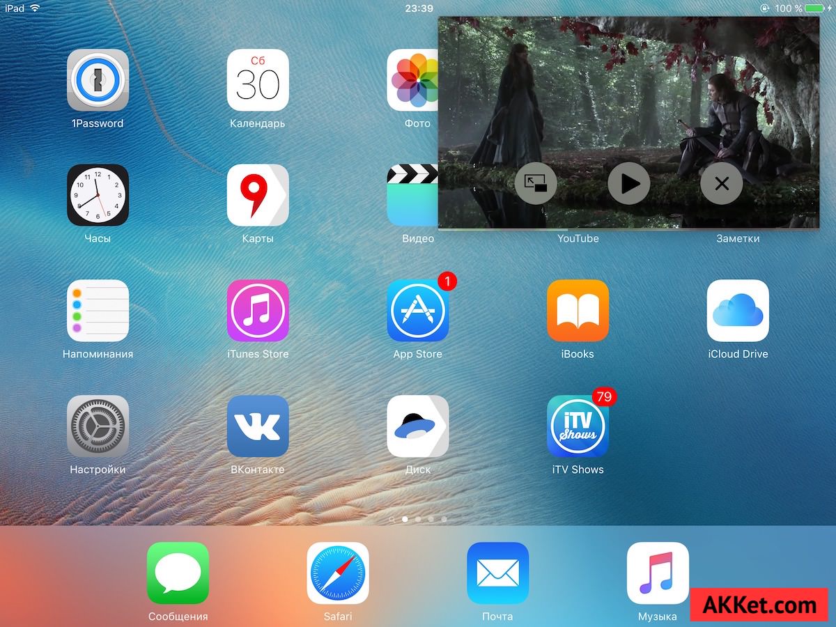 Владельцев iPad Air 2, iPad Pro 9,7, iPad Pro 12,9 и iPad mini 4 однозначно порадует возможность поддержки режима «Картинка в картинке», который позволяет закреплять видео в небольшом окошке поверх любого другого приложения в iOS.