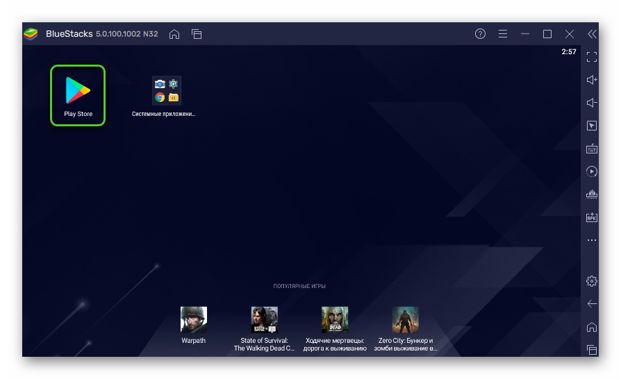 Вас встретит минималистичный интерфейс эмулятора. В первую очередь вам необходимо скачать мессенджер WhatsApp. Это привычная процедура для всех владельцев Android-техники, ведь используется Play Store. Правда, здесь это можно назвать Play Store. Нажмите на иконку в окне программы.