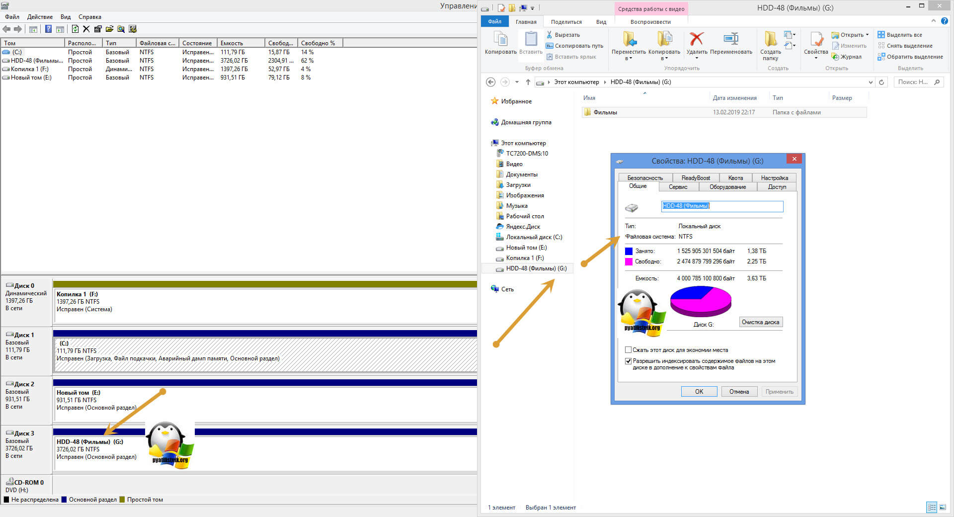 Начнется процесс сканирования, если все хорошо, то у вас должна определиться старая файловая система, в моем случае, это NTFS, а так же определилась метка тома, в моем случае, это HDD-48 (Фильмы). Теперь начинается три этапа проверок на битые сектора, поиск и восстановление неиндексируемых файлов и сам ремонт файловой таблицы.