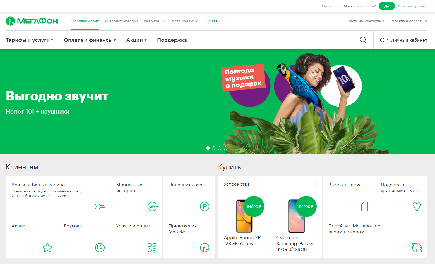 Сайт Мегафона имеет логическую структуру состоящую из следующих разделов: