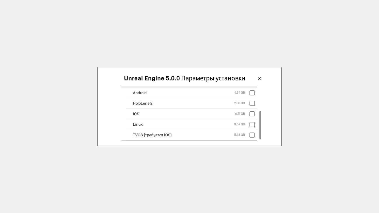 По умолчанию версия 5.0.0 занимает чуть больше 55 Гб на жёстком диске. Но размер легко сокращается до 32–36 Гб, если отключить ненужные сегменты в настройках установки — например, контент для дополнительных платформ.