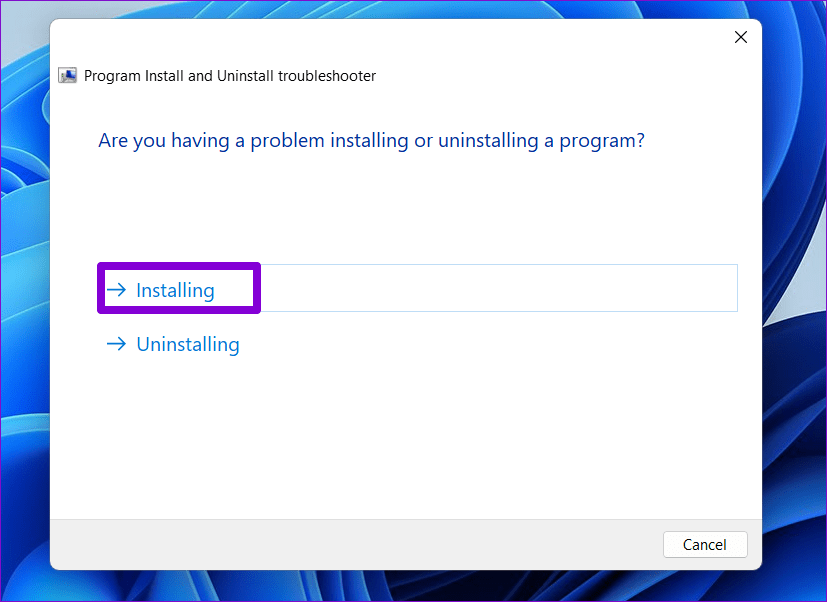 Если проблема не устранена, вы можете обратиться за помощью к одному из средств устранения неполадок Windows. Microsoft предлагает средство устранения неполадок при установке и удалении программ, которое может автоматически обнаруживать и исправлять любые поврежденные ключи реестра, которые могут препятствовать установке программ в Windows. Вот как вы можете его использовать.