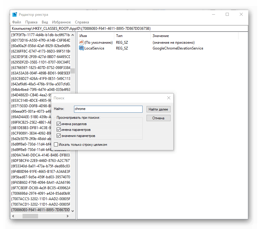 Дальше нужно удалить из реестра остатки записей Google, так как они могут помешать корректно установиться браузеру и вирус снова будет вам надоедать: