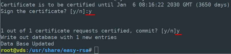 export KEY_SIZE=1024 — длина ключа. Можно указать 2048, но особого смысла в этом не будет, только VPN медленнее станет работать.