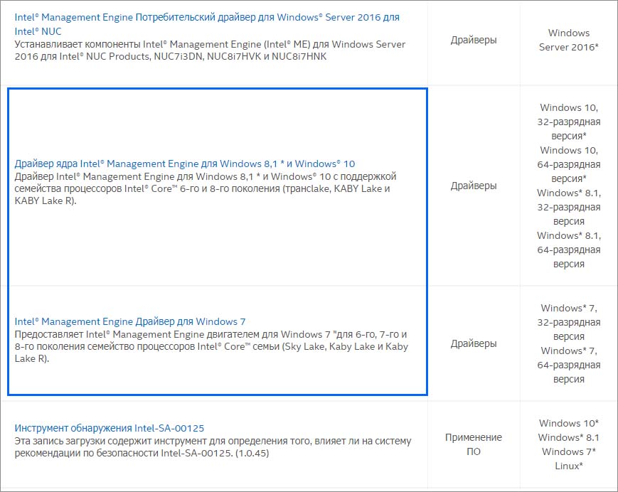 После сделайте запрос в интернете «Intel Management Engine driver». Перейдите на указанный сайт и загрузите последнюю версию драйвера.