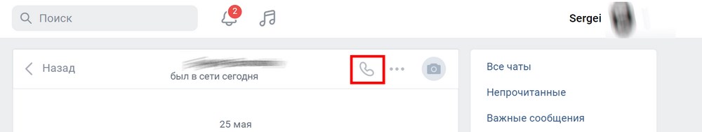 - Активируем функциональную кнопку в виде телефонной трубки в правом верхнем углу пользовательского окна.