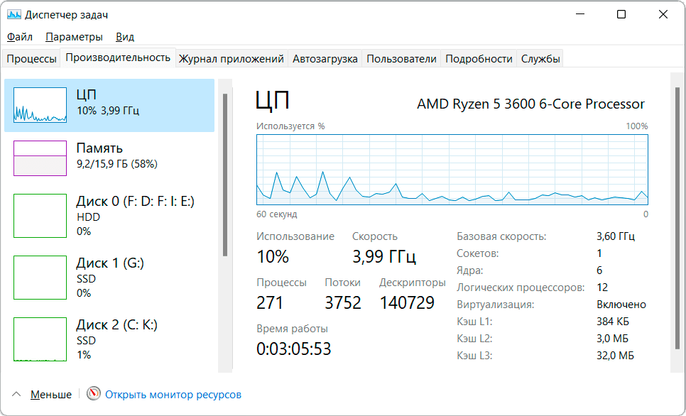 Как проверить, включена ли виртуализация? Собственно, в классическом Диспетчере задач выберите подраздел Производительность и ЦП. Найдите строку Виртуализация и посмотрите Включена ли она. Плюс, SystemInfo в Терминале Windows (виртуализация во встроенном ПО).