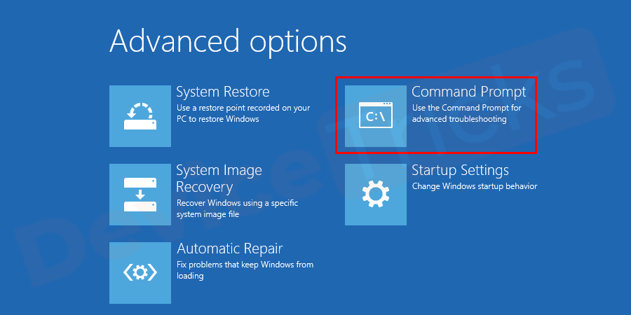 Advanced Options > Command Prompt.