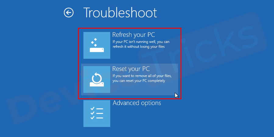 - Click on «Advanced options” in the automatic repair blue screen
