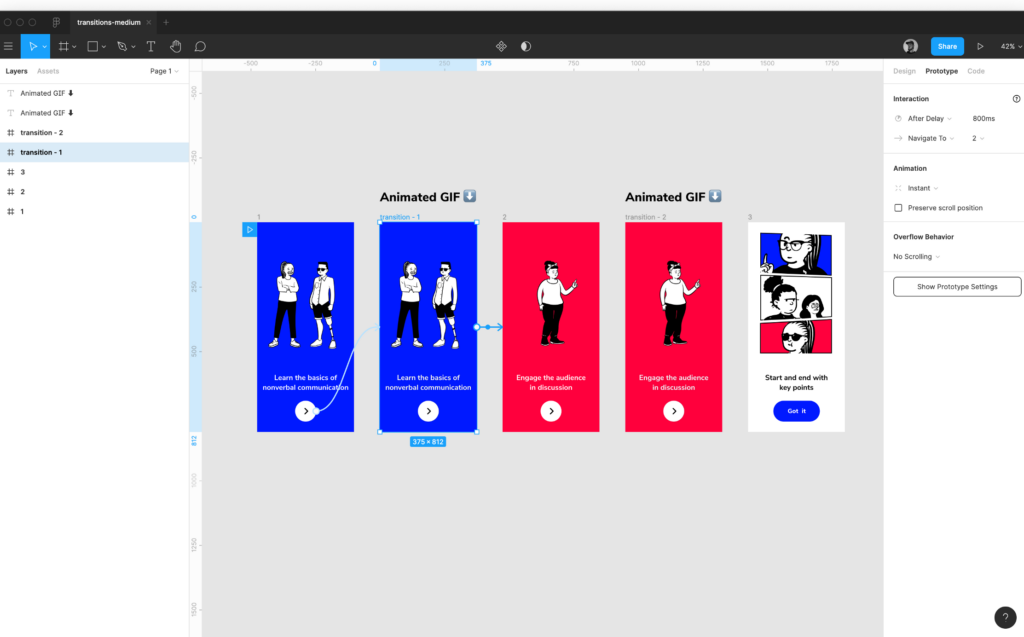 Figma пригодится, если вы хотите применить моушн к интерфейсам. В редакторе есть несколько способов создания анимации. Например, можно делать красивые переходы в макете приложения и использовать умную анимацию, которая самостоятельно анимирует похожие объекты. У Figma есть бесплатный тариф, которого будет достаточно начинающему дизайнеру. Сейчас сервис заморозил корпоративные российские аккаунты и закрыл доступ к продажам, но бесплатными личными аккаунтами можно пользоваться без ограничений.