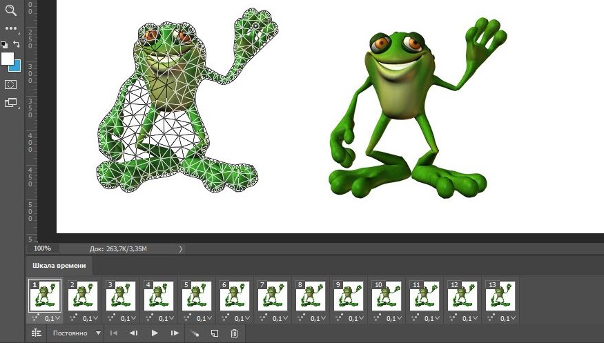- Повысить производительность adobe animate, можно преобразовав часть слоёв в покадровую анимацию.