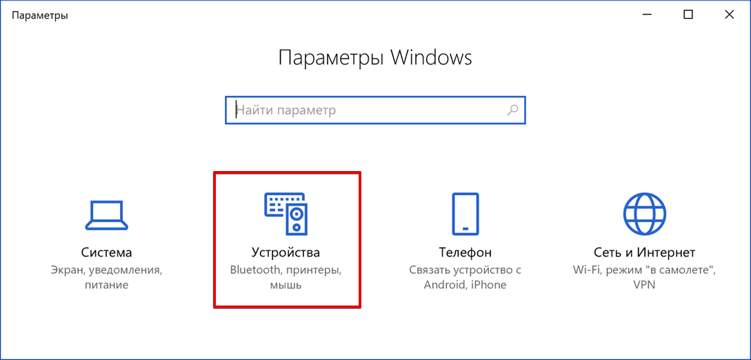 В зависимости от установленной ОС порядок действий может незначительно отличаться. Например, в Windows 10 сначала следует выбрать пункт «Настройки», а затем уже перейти в папку «DEVICES».