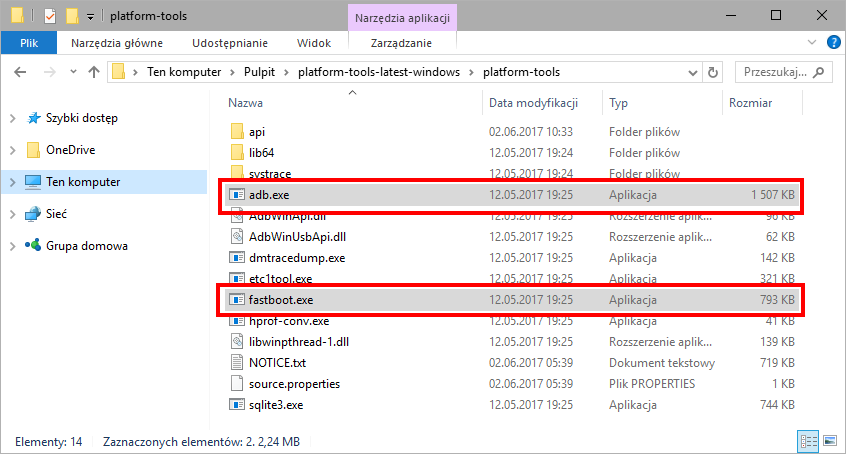 Будет загружен небольшой архив, который должен быть распакован в выбранное вами место. Таким образом мы получим папку с именем «Платформа-инструменты». После открытия этой папки вы найдете различные файлы, но наиболее важные из них ADB.exe и Fastboot.ехе.
