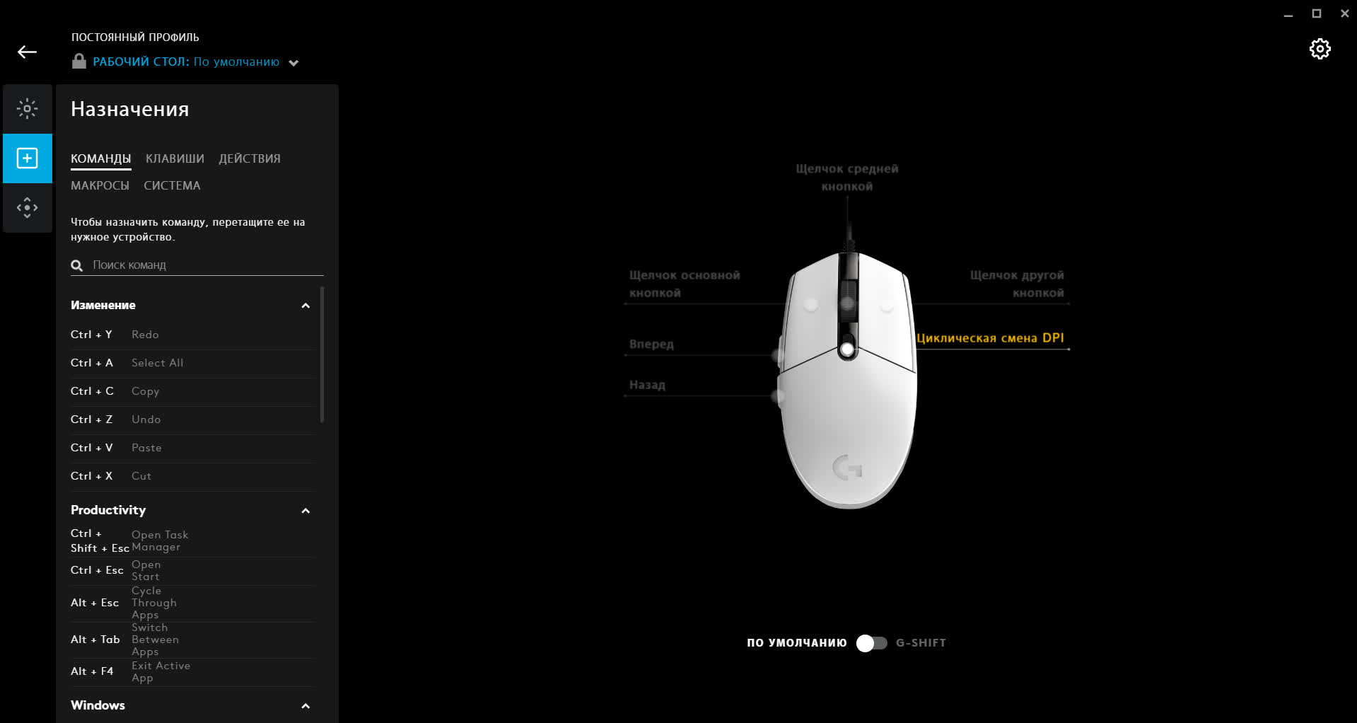 Чтобы раскрыть весь потенциал устройства, необходимо установить специальное ПО Logitech Gaming Software. В нем можно настроить цвет подсветки, запрограммировать дополнительные клавиши на выполнение комбинаций действий (макросов), переключить разрешение и т.д. Примечательно, что все настройки сохраняются во внутреннюю память мыши. И переставив ее на другой ПК, ничего настраивать снова не придется. Такая возможность – редкость для недорогих решений.