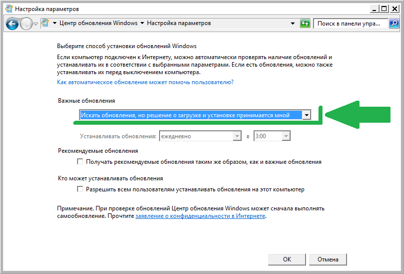 «Проверить наличие обновлений, но решение о загрузке и установке принимаю я».