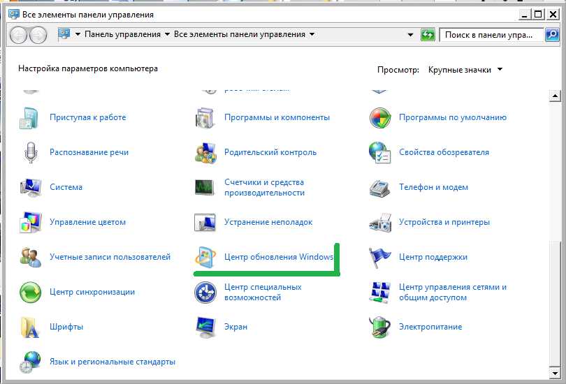 Откройте «Панель управления» и найдите «Центр обновления Windows«.