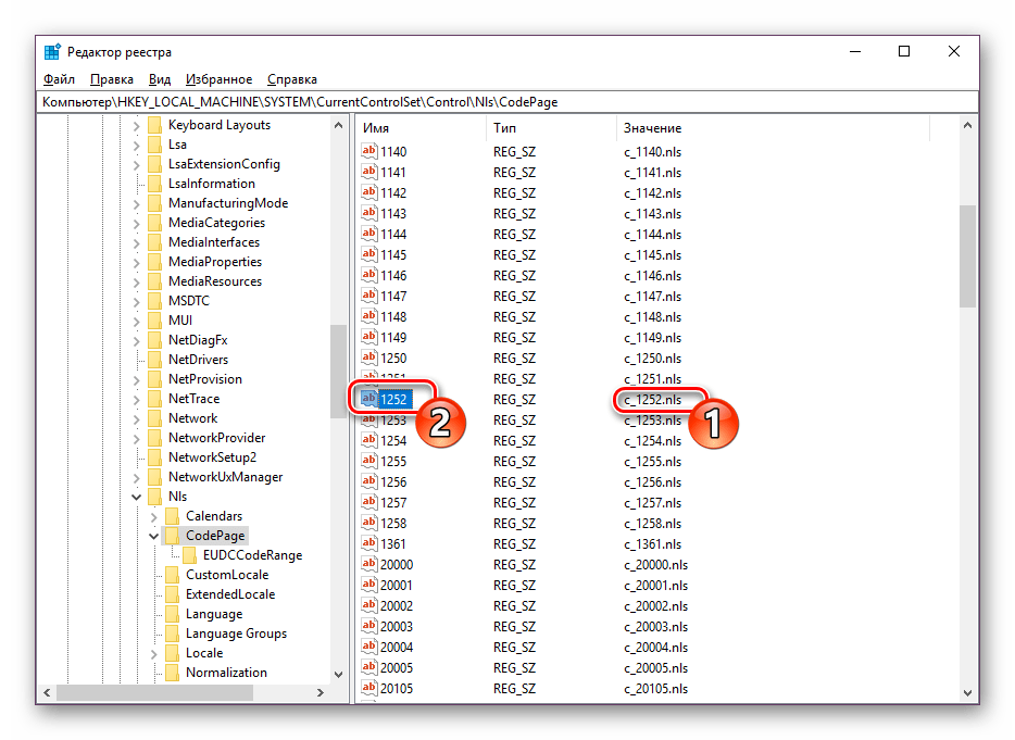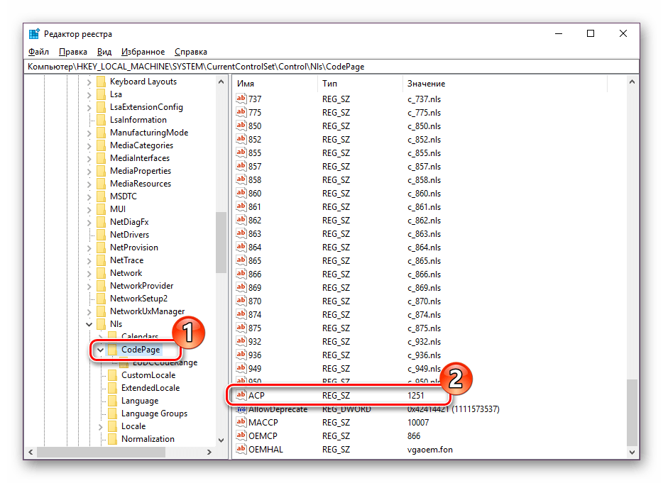 Кодовые страницы выполняют функцию сопоставления символов с байтами. Существует множество разновидностей таких таблиц, каждая из которых работает с определенным языком. Часто причиной появления кракозябров является именно неправильно выбранная страница. Далее мы расскажем, как править значения в редакторе реестра.
