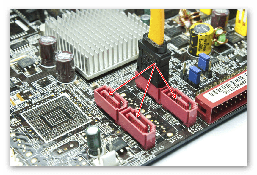 На материнской плате всегда несколько портов для SATA, поэтому дополнительно рекомендуется подключить провод к другому разъему вместо текущего.