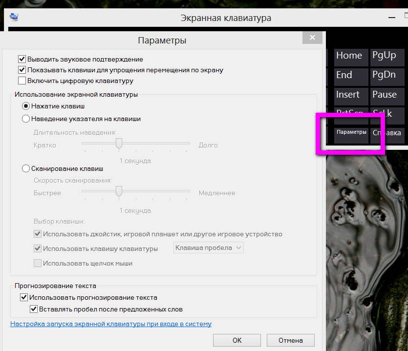 Переводим триггер с надписью: «Включение экранной клавиатуры» в положение «Вкл.».