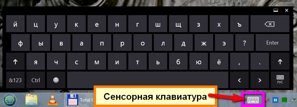 Функционал Windows 8 и 8.1 в этом плане несколько шире. Кроме штатного приложения здесь можно воспользоваться и альтернативным вариантом – сенсорной клавиатурой для ноутбуков и планшетов. Это выезжающее плавно окно с большими кнопками. Если используемая операционная система – “восьмерка” или 8.1, щелкаем на панели задач кнопкой (правой) манипулятора, вызывая контекстное меню, выбираем “Свойства”. Далее:
