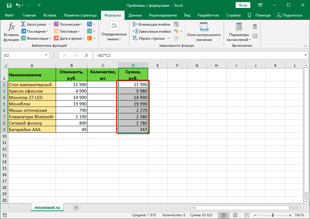 - Получаем столбец с результатами, посчитанными с помощью формул.