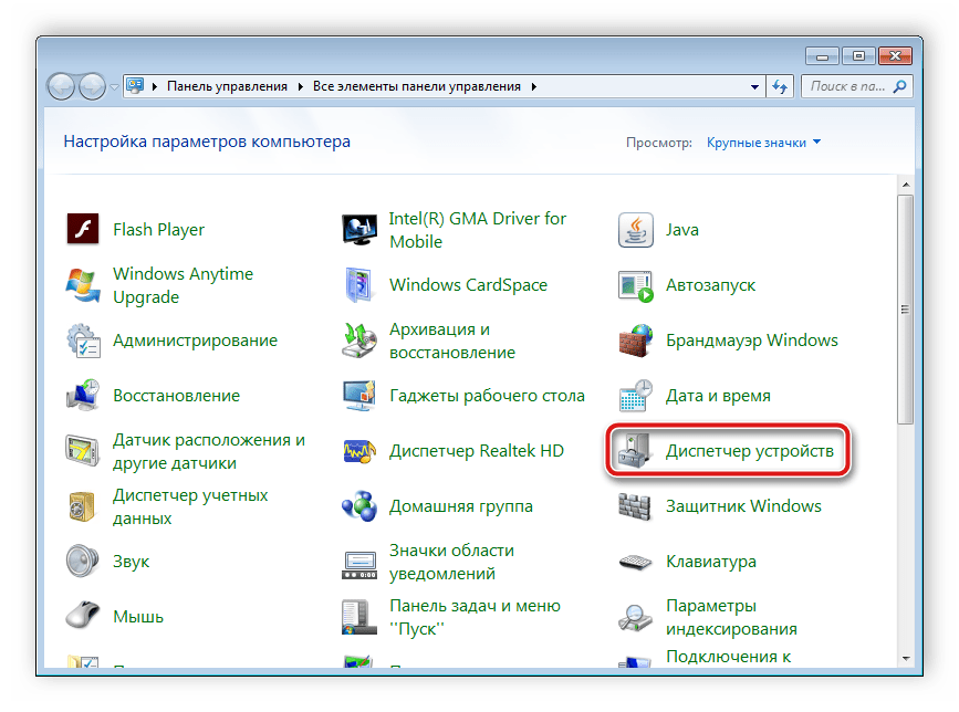 Отыщите раздел «Диспетчер устройств» и запустите его.