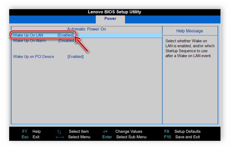 Чтобы активировать в BIOS Wake-on-LAN, выполните такие действия: