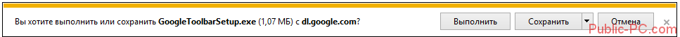 Привыкнув к расширениям в предыдущих браузерах, казалось, что инструменты установятся самостоятельно. Но нужно скачать программу для перевода страниц в эксплорере. После нажатия на ссылку, внизу появляется окно. Нажимаем «Сохранить» и запускаем .exe файл с компьютера, либо сразу кликаем на «Выполнить». Программа скачается и сразу запустится установка.