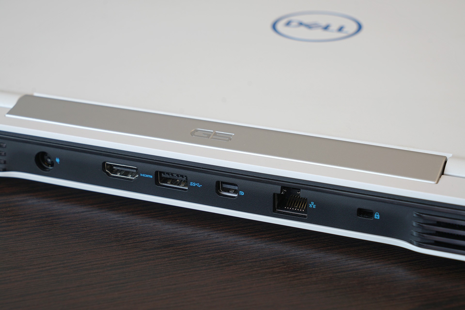 Ноутбук большой, так что и разъёмов на корпусе много. Все самые громоздкие интерфейсы разработчики благоразумно вынесли на заднюю часть корпуса. После пары недель с G5 5590 невольно начинаешь недоумевать почему все остальные производители так не делают, ведь входу для адаптера питания, интерфейсам для подключения мониторов (HDMI, DisplayPort) и разъёму для проводного интернета (RJ-45) именно тут самое место. Когда такие огромные штекеры с их проводами торчат из боков лэптопа, то это очень сильно мешает. А ещё сзади есть один USB 3.1. Можно, скажем, донгл от беспроводной мышки в него воткнуть или коннектор от проводной.