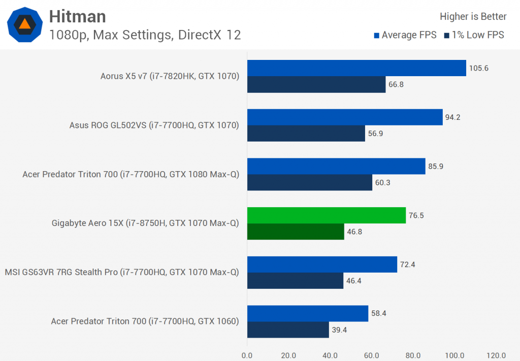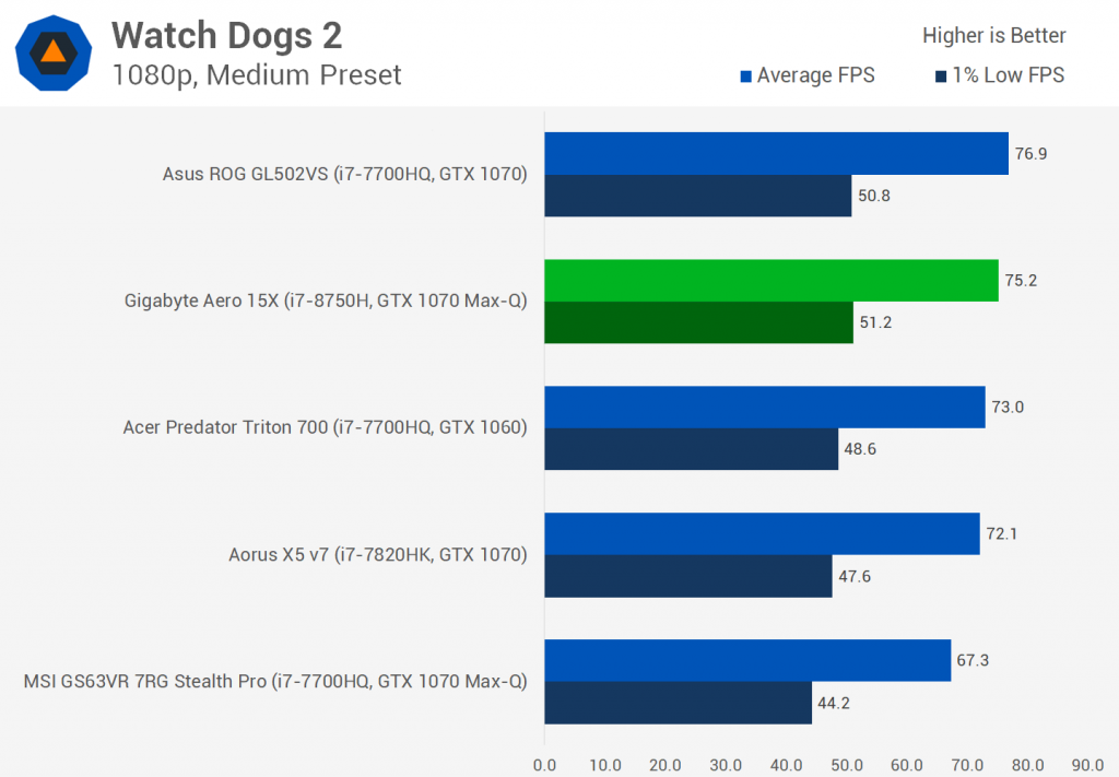 Однако степень, в которой вы получите повышение производительности, зависит от игры и настроек, которые вы используете. На подавляющем большинстве игровых ноутбуков вы будете GPU узким местом в современных названиях даже на скромных уровнях качества при 1080p. При использовании 1070 Max-Q внутри нашей тестовой системы наибольшее распространение имеет увеличение производительности в диапазоне от 5 до 15 процентов даже в титрах, которые уже в среднем составляли от 80 до 100 FPS в системе 7700HQ.