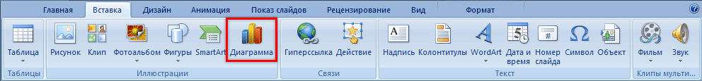 В блоке «Иллюстрации» будет иконка диаграмм, которая и откроет окно создания.
