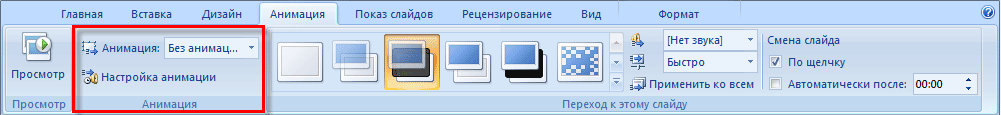 В более современных версиях программы (2010, 2013, 2016, 2019) для настройки таких переходов сделали отдельную вкладку «Анимация».