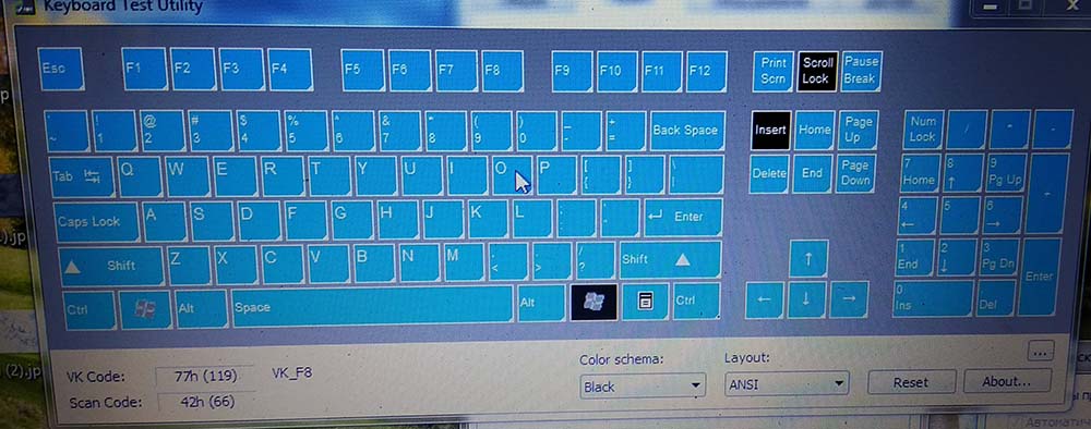 В итоге, если материнская плата находится в исправном состоянии, то будут нажаты все клавиши. У меня не нажались клавиши : Scroll Lock, Insert, вторая клавиша виндовс. Это правильно, так как этих клавиш у меня нет на родной клавиатуре.