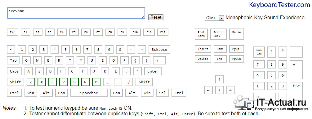 Ссылка для тестирования клавиатуры с помощью Keyboard Tester на https://www.keyboardtester.com/tester.html