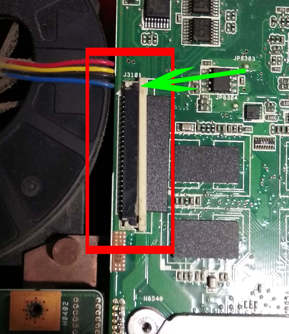 - Вставьте шлейф в разъем и установите клавиатуру.