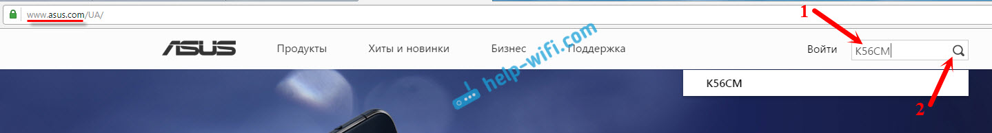 - Введите в поиск название модели устройства (указывается в документах к лэптопу).