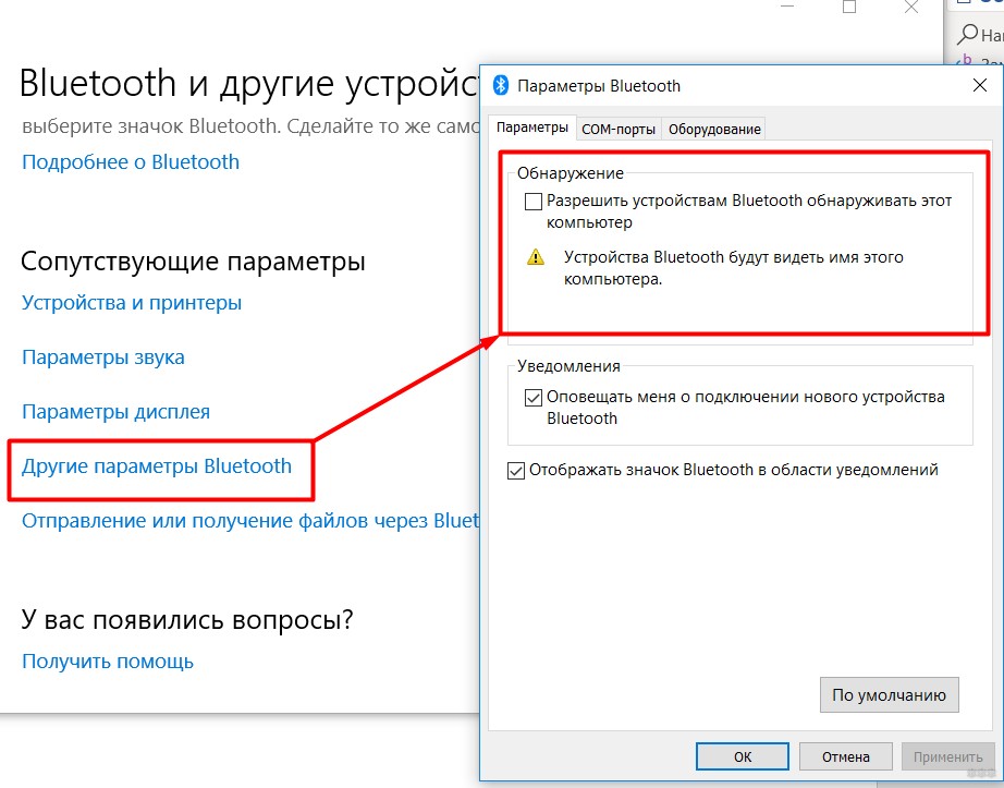 Далее поставьте галочку напротив пункта «Отображать значок Bluetooth в области уведомлений» и нажмите OK.